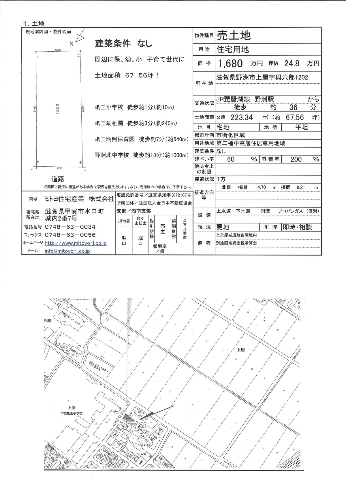 注文建築用地 野洲市上屋 のお問合せはこちら
